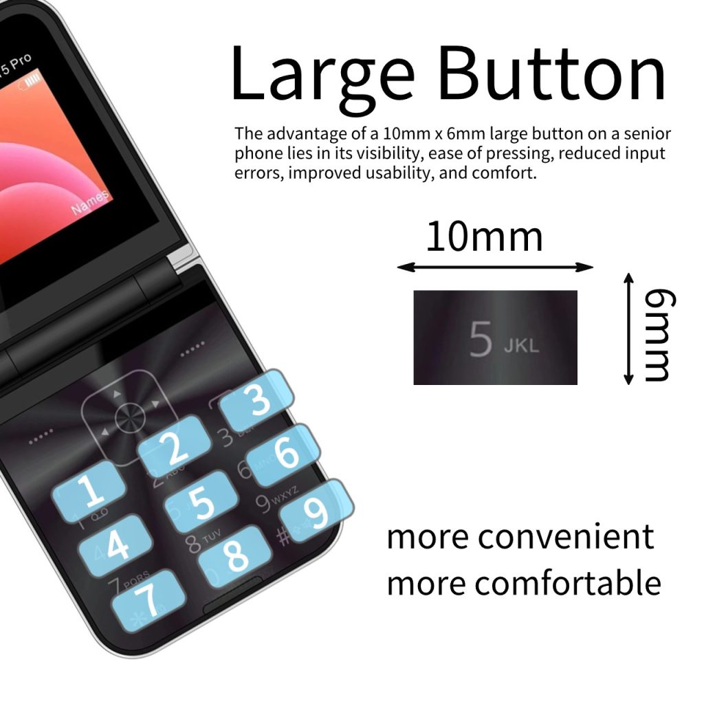 A compact, durable, dual-screen flip phone with powerful battery life and all the essentials — perfect as your main or backup device, especially in areas with 2G network.